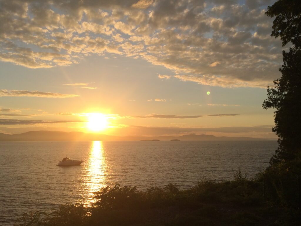 While the Connecticut river completely divides Vermont from New Hampshire on the eastern side of our state, Lake Champlain on the west side divides the top left half of Vermont from New York (the top of the lake is in Canada). Lake Champlain is the eighth largest freshwater lake in the United States and is120 miles long, 12 miles at its widest point, its average depth is 64 feet but 400 feet at its deepest, and it has 71 islands (https://www.lclt.org/about-lake-champlain/lake-champlain-facts/). It is a beautiful lake with a lot of history. It was formed by Pleistoecene glaciation which started about 3 million years ago and ended about 12,000 years ago (https://www.lakechamplaincommittee.org/learn/natural-history-lake-champlain). It was named after the French explorer Samuel de Champlain in 1609, ships were built there for the War of 1812, and at one point it was a sixth great lake! Not to mention the belief that a creature named Champ lives in there, very similar to the story of Nessie, Scotland’s very own Loch Ness Monster.