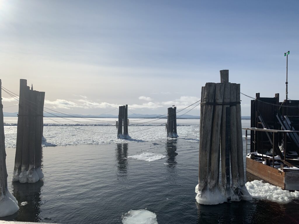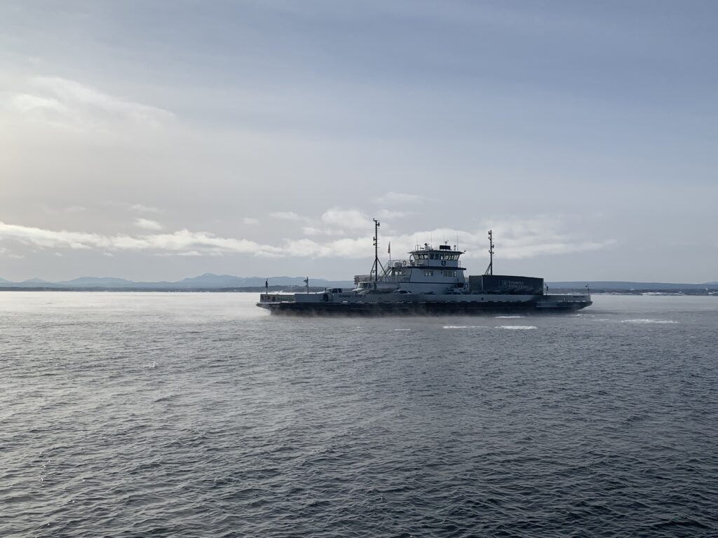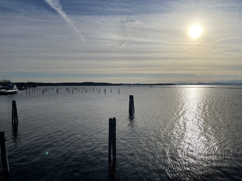 Lake Champlain is really a beautiful lake to visit. There is a boardwalk of sorts down near the waterfront in Burlington, VT, where you can also find the ECHO, Leahy Center for Lake Champlain and maybe see some kite flyers in the park down there. There are also two ferries that operate year-round (weather permitting) that go back and forth from Vermont to New York. They move from Grand Isle, VT, to Plattsburgh, NY, and the other from Charlotte, VT, to Essex, NY. It’s nice to be able to take your car on the ferry, enjoy the view of Burlington behind you and the Adirondack Mountains in New York in front of you, and then go for a drive in a neighboring state in this manner. Another side note: the Charlotte in Vermont is pronounced shar-LOT, unlike the Charlotte in North Carolina, which is pronounced SHAR-let. Now you know!