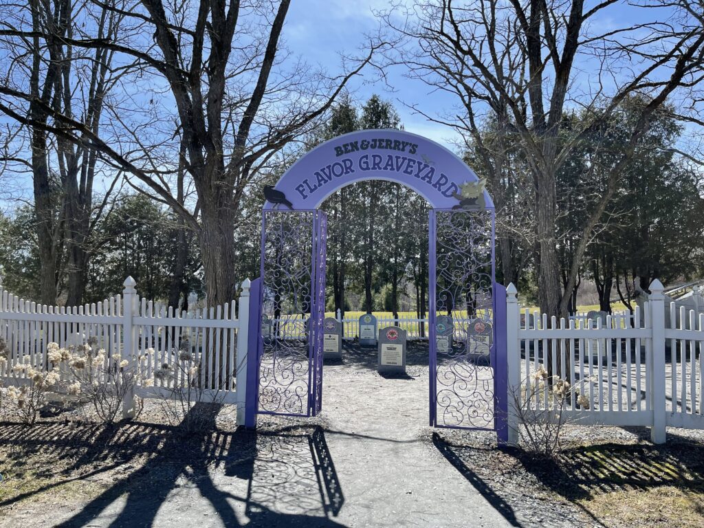 In 1985, the Waterbury, VT, factory was built. The photos below are from April 2022, when my daughter and I visited the Waterbury location! They have a playground there for your little ones. They also have their Flavor Graveyard there, which pays respect to all the retired flavors from over the years.